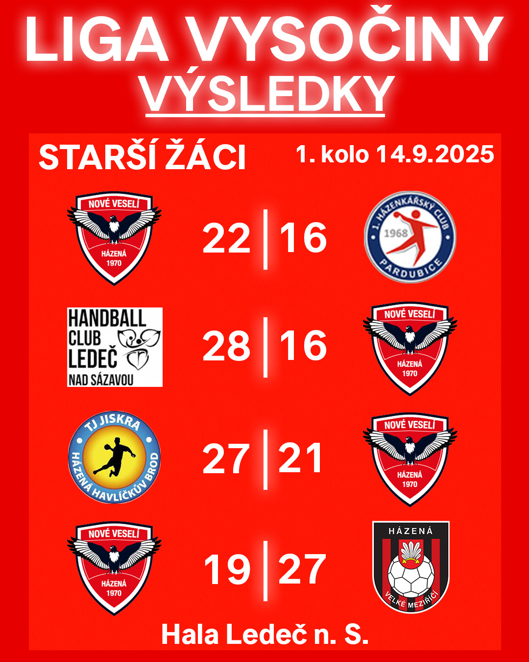 TJ Sokol Nové Veselí – TJ Kovofiniš Ledeč nad Sázavou 16 : 28 (5 : 13)