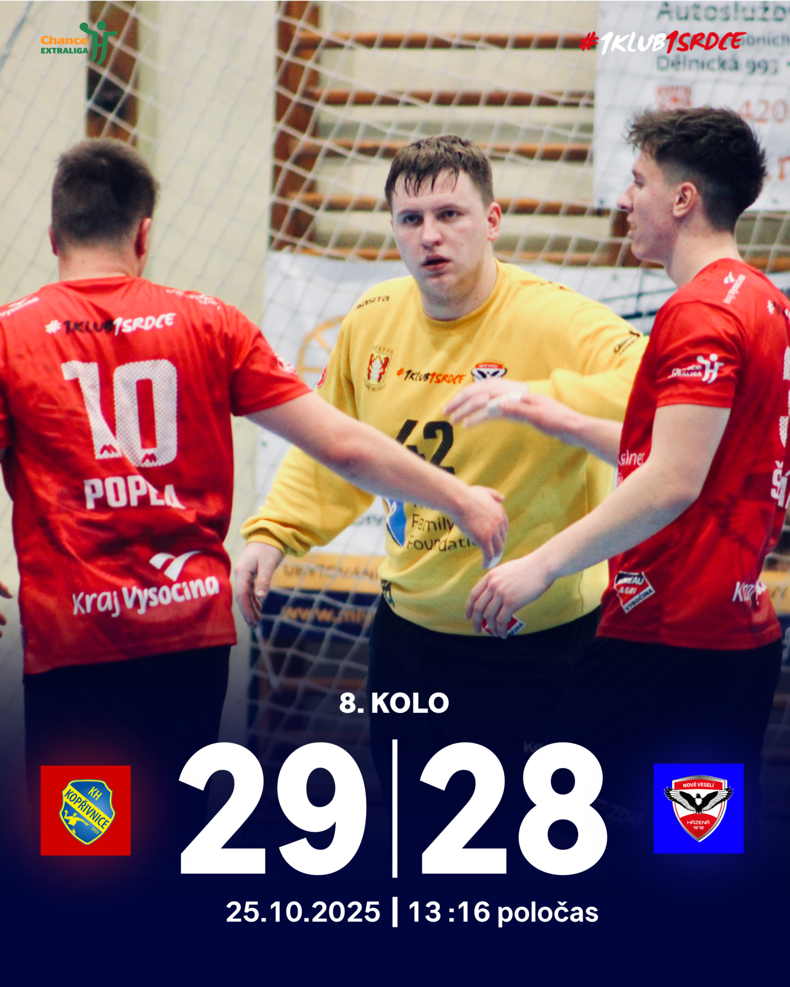 KH ISMM Kopřivnice – TJ Sokol Nové Veselí 29 : 28 (13 : 16)
