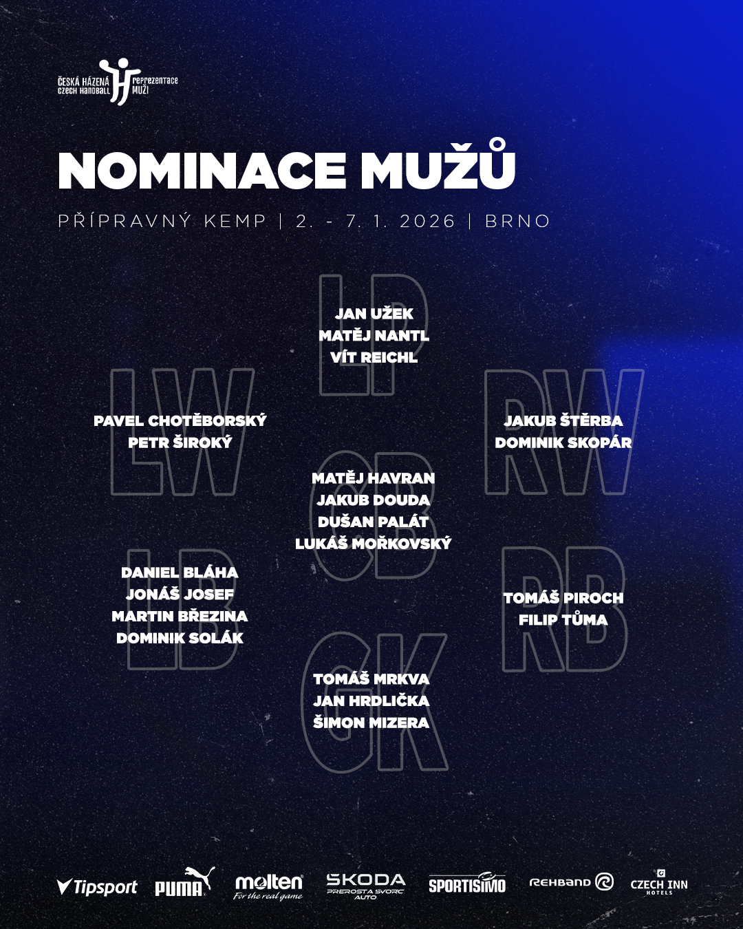 jasná závěrečná nominace hráčů, kteří na šampionát odcestují. Kromě mužů se v Brně sejde ve dnech 5. až 10. ledna