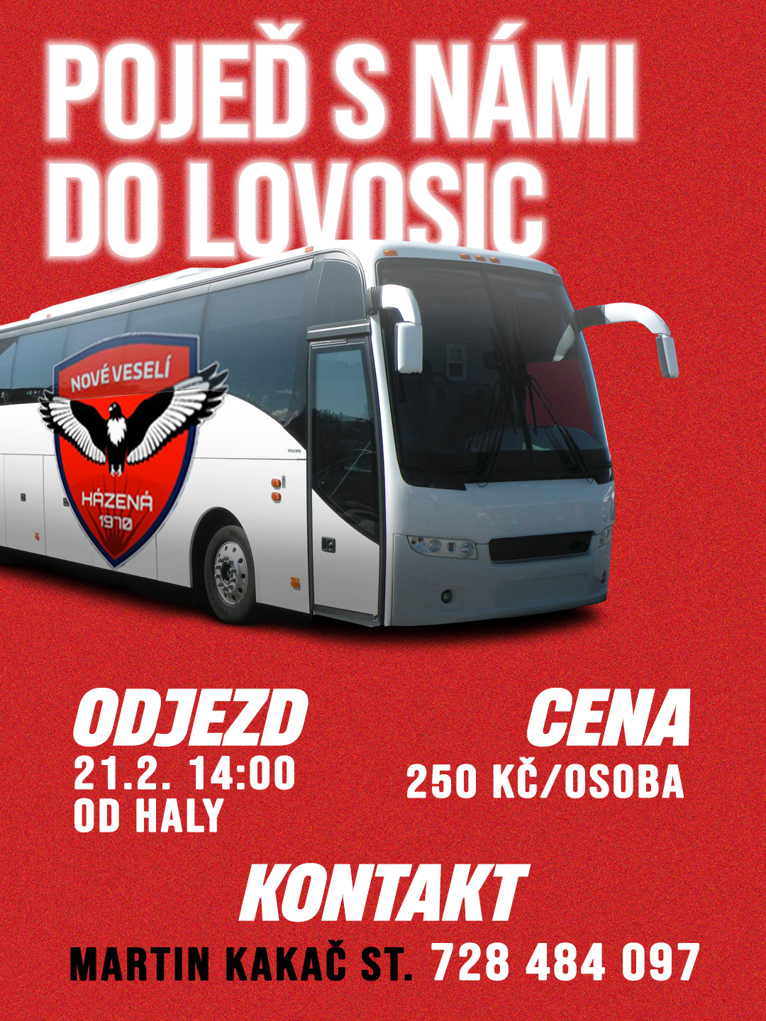 Pro naše fanoušky nabízíme možnost vyrazit autobusem. Odjezd je ve 14:00 od ZDT Areny.