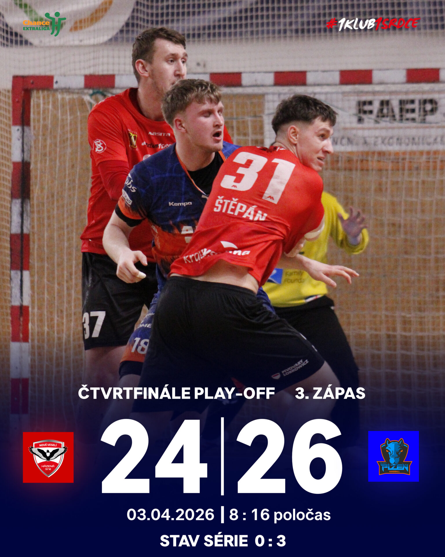 ČTVRTFINÁLE CHANCE EXTRALIGY MUŽŮ: 3. ZÁPAS | 3. 4. 2026