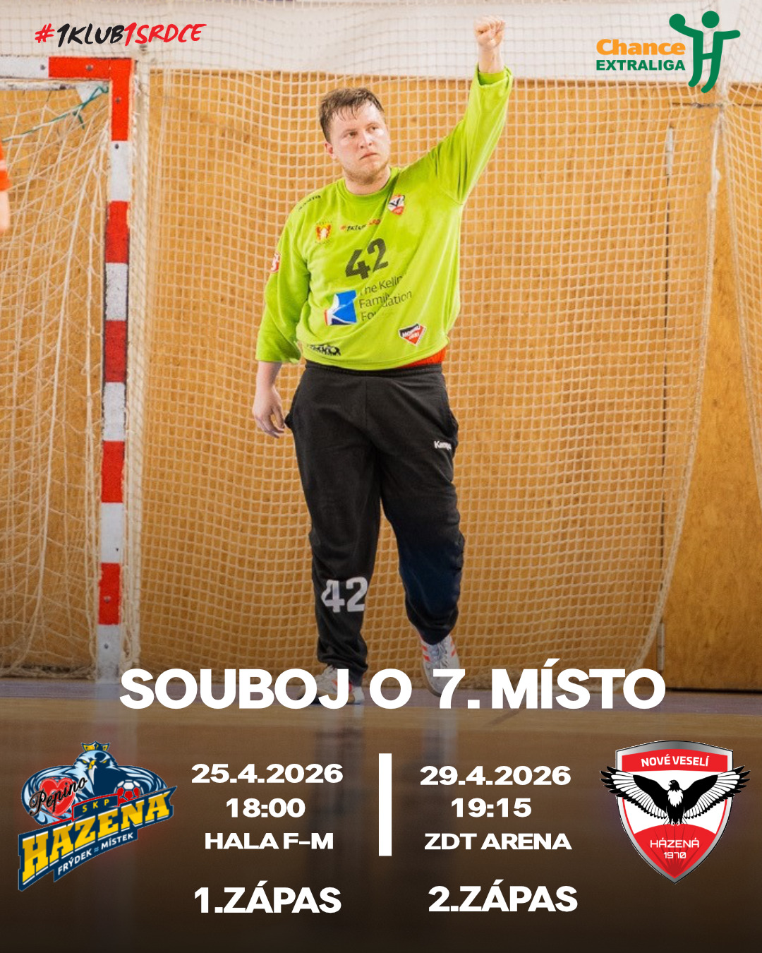 Chance Extraliga 1. 3. 2026: Pepino Házená Frýdek-Místek – TJ Sokol Nové Veselí 26 : 27