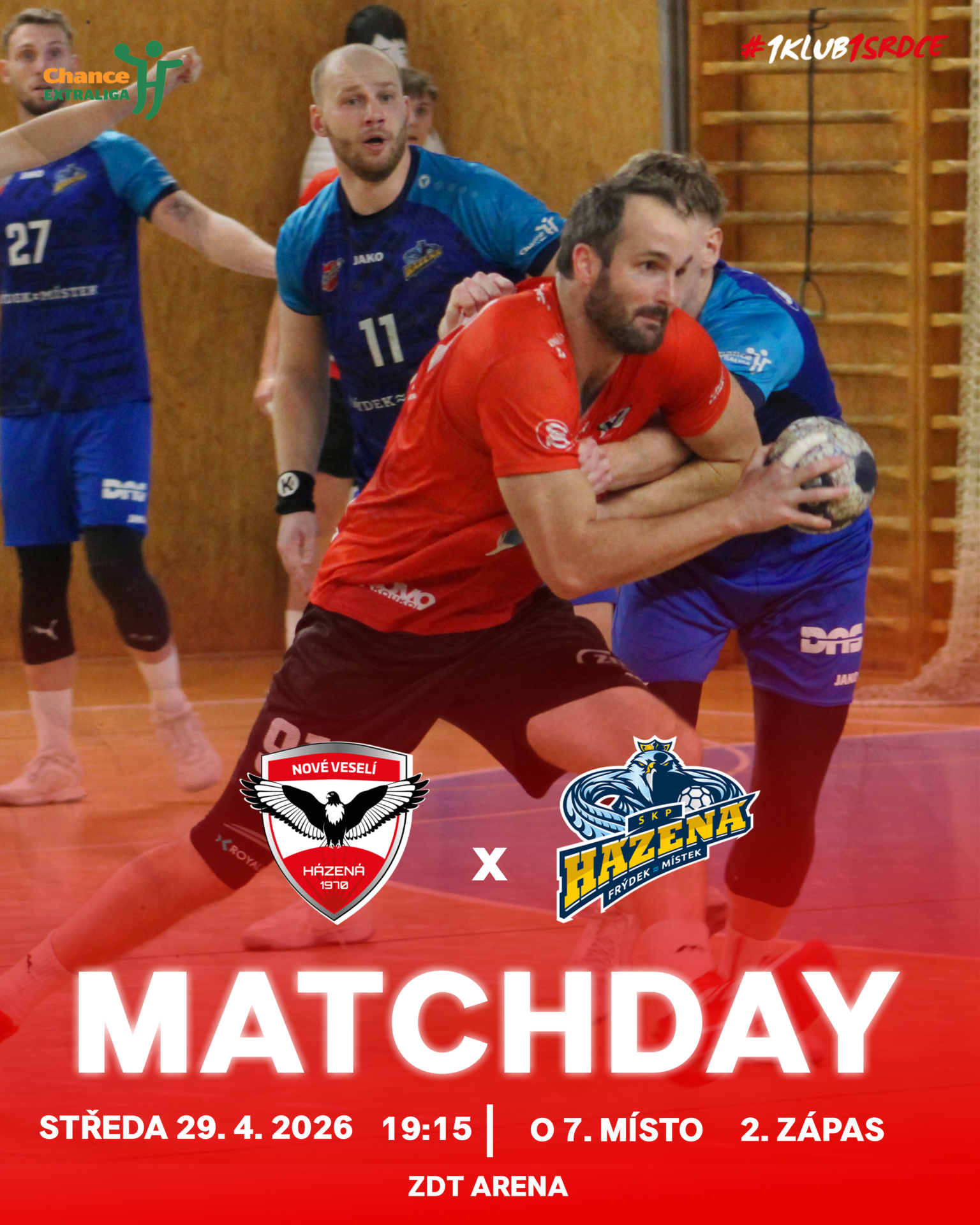 25. 4. 2026: Pepino Házená Frýdek-Místek – TJ Sokol Nové Veselí   34 : 26